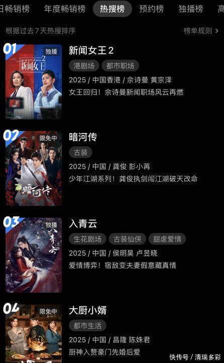 《新闻女王2》开播夺热度冠军,打多少资方的脸,佘诗曼赌对了! 之前总听人说港剧不行了,剧情老套又狗血,真让人失望。还好 2023 年《新闻女王》横空出世,职场博弈看得人直呼过瘾,可之后港剧又没了声响。别急呀,佘诗曼带着《新闻女王 2》杀回来了,刚开播就霸占热搜第一,豆瓣上全是四星五星好评,说 “梦回第一部”“太上头了”,这热度简直绝了!